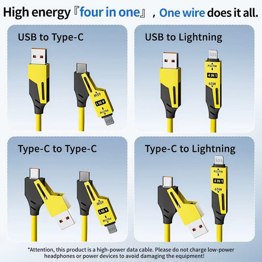 INBAE (2025 Model) 4 in 1 65 Watts Fast Charging Cable | USB & Lightning Cable