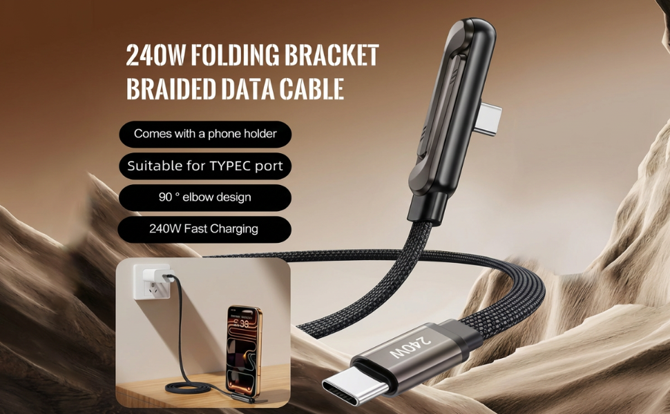 TikTok 240W Type C to C Ultra Fast Charging Cable with Invisible Stand (1.5M)